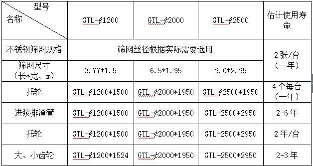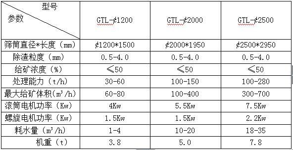 GTL系列料漿分級篩技術(shù)參數(shù)表: