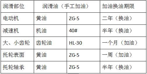 3.檢查各潤滑點油質(zhì)是否清潔,定期加油。潤滑制度見表: